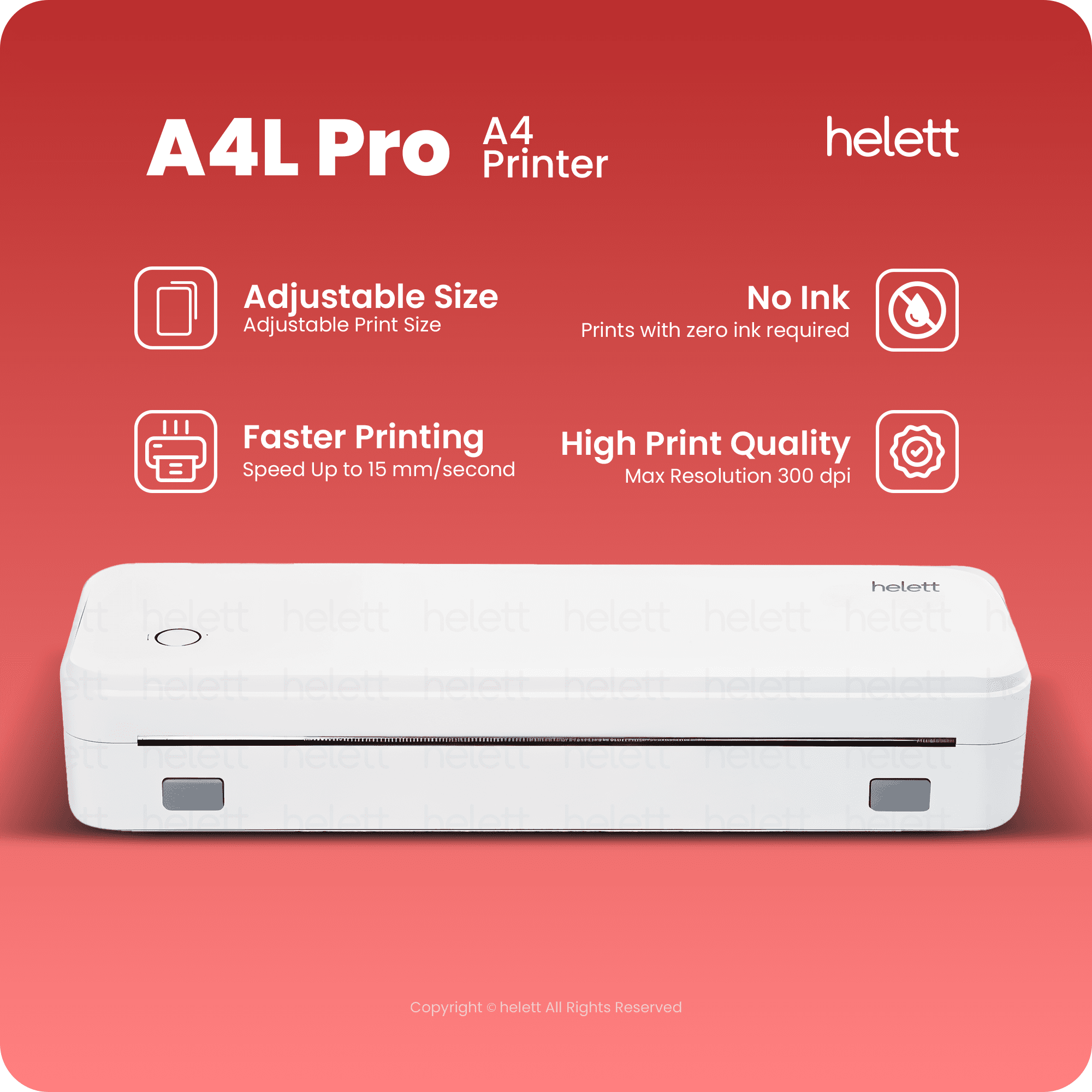 Helett® A4L Pro Wireless Portable A4 Size Thermal Printer, a cutting-edge, compact, and portable thermal printing solution designed to bring effortless, ink-free printing to your home, office, or on-the-go workspace. Engineered with both functionality and convenience in mind, this printer offers powerful performance in a lightweight body, weighing just 688 grams, making it one of the most travel-friendly A4 printers available today. At the heart of the A4L Pro is its 300 DPI high-resolution printing technology, delivering crisp, sharp text and graphics suitable for documents, forms, invoices, assignments, charts, and more. Its direct thermal printing system means you never need to worry about ink or toner—just load the special thermal paper and you're ready to print. This not only reduces your printing costs but also supports a cleaner, more eco-friendly workflow. The A4L Pro is equipped with built-in Bluetooth for wireless connectivity, allowing easy printing directly from your Android or iOS devices using compatible mobile apps. For users who prefer wired connections, it also includes USB support, making it fully compatible with Windows and Mac computers—perfect for students, professionals, and small businesses alike. Its integrated 2600mAh rechargeable battery gives you the freedom to print anywhere, anytime, without needing to be plugged in—ideal for mobile offices, fieldwork, travel, or any off-grid work environments. On a full charge, the battery provides sufficient power for extensive printing sessions, ensuring reliable performance when you need it most. The sleek and minimal design of the Helett A4L Pro not only saves space on your desk but also complements modern setups. Its intuitive interface makes operation simple even for first-time users, and its thermal technology guarantees fast, quiet, and maintenance-free printing. Backed by a 1-year warranty, the Helett® A4L Pro stands as a durable, cost-effective, and modern solution for anyone needing high-quality A4 prints without the hassle of traditional printers. Whether you're working from home, managing office paperwork, traveling for business, or handling remote job tasks, the A4L Pro is built to keep up—quietly, efficiently, and wirelessly.