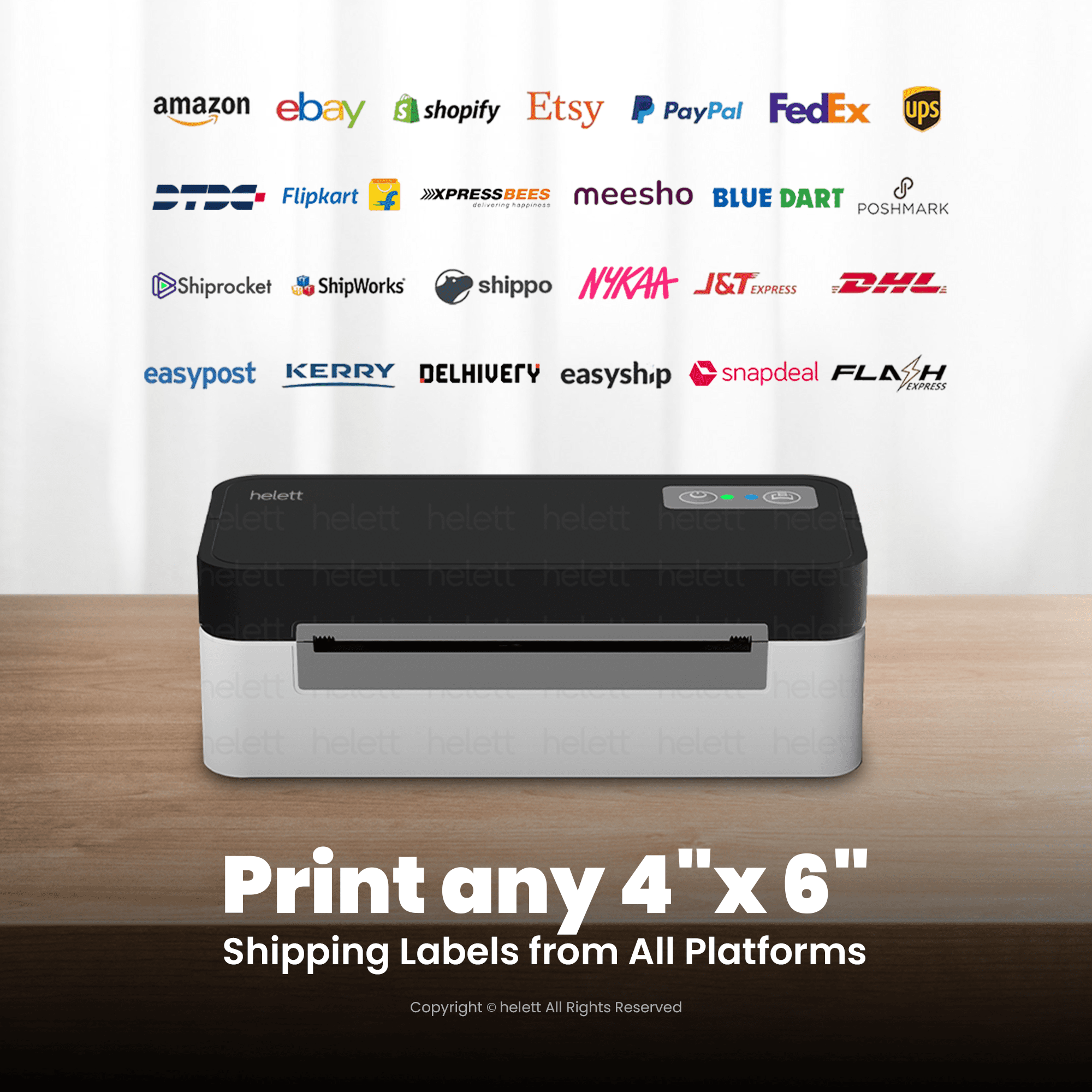 The Helett H30C Lite USB Direct Thermal Label Printer is a powerful and efficient solution tailored for high-quality label printing, particularly optimized for shipping labels. With a sharp 203 DPI resolution, this printer ensures clear and professional prints, meeting the demands of various applications. Specifically designed for 4x6" label sizes, it is an ideal choice for businesses requiring precise and reliable shipping label printing. Boasting a rapid printing speed of 152 mm (6 inches) per second, the H30C enhances productivity by swiftly generating labels, making it suitable for environments with high-volume label printing needs. The incorporation of a robust 32-bit CPU ensures efficient and smooth operation, even when handling complex label printing tasks. Compatible with Windows, Mac, and Linux operating systems, this label printer offers versatility in integration across different platforms. Utilizing USB Direct Thermal technology, it eliminates the need for ink or toner, providing a cost-effective and low-maintenance solution. The inclusion of a convenient paper holder adds organizational ease to the label printing process, and its sleek white design contributes a modern aesthetic to any workspace. The Helett H30C is a reliable and feature rich label printer for businesses aiming for precision, speed, and convenience in their shipping label processes.